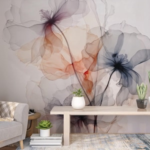 PINK FLORAL WALLPAPER- Adhesive Living Room Wallpaper- Enourmous Pink Flowers- Home Decor- Wall Art- Personalized- Pink Flowers- Custom Size