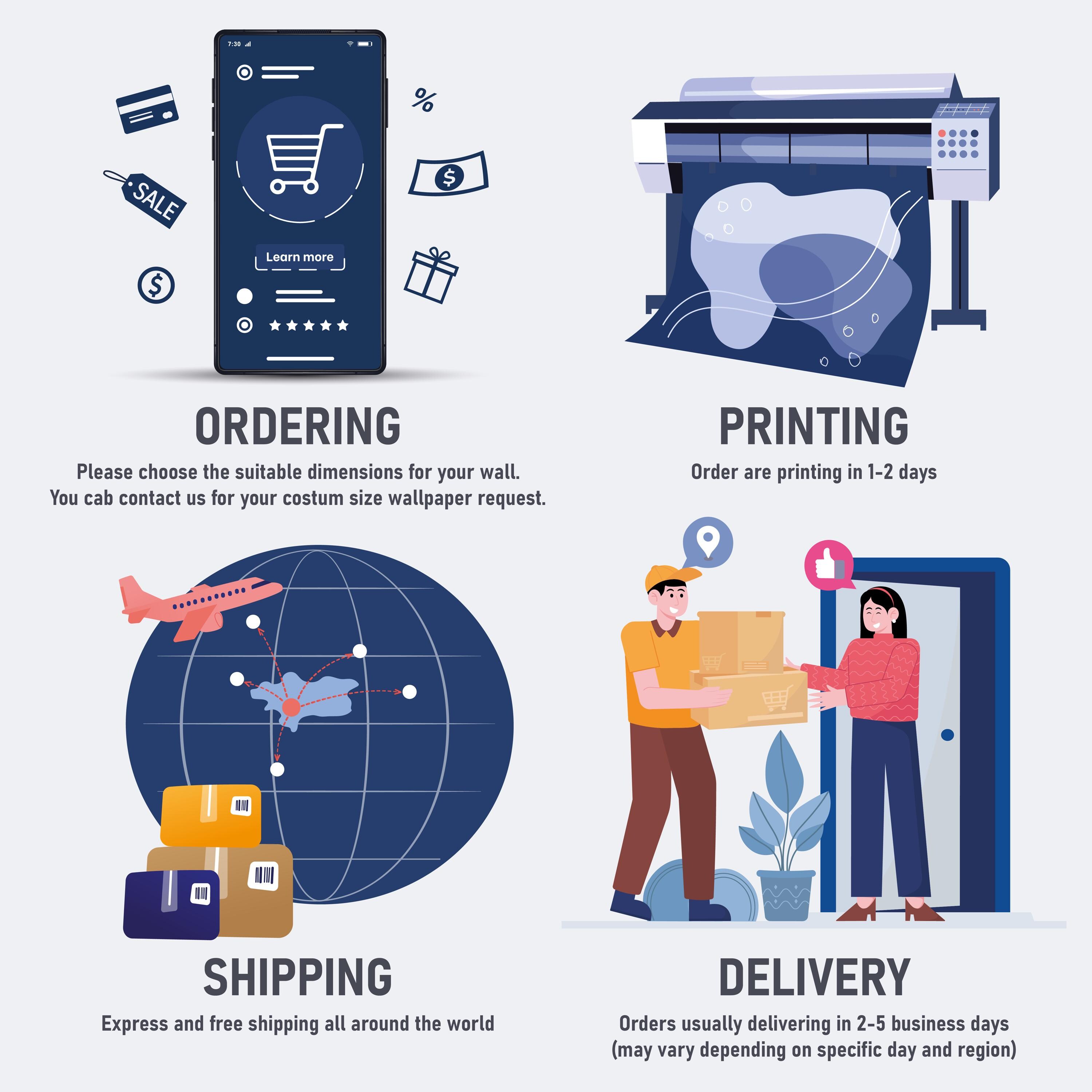 📏 Tailored to Any Size: Spaces come in different dimensions, and standard wallpapers may not cover these differences. But worry not, we can print wallpapers in any size you need. No matter the dimensions of your wall, just let us know your measurements, and we'll provide you with custom-printed wallpapers to achieve the look you desire.