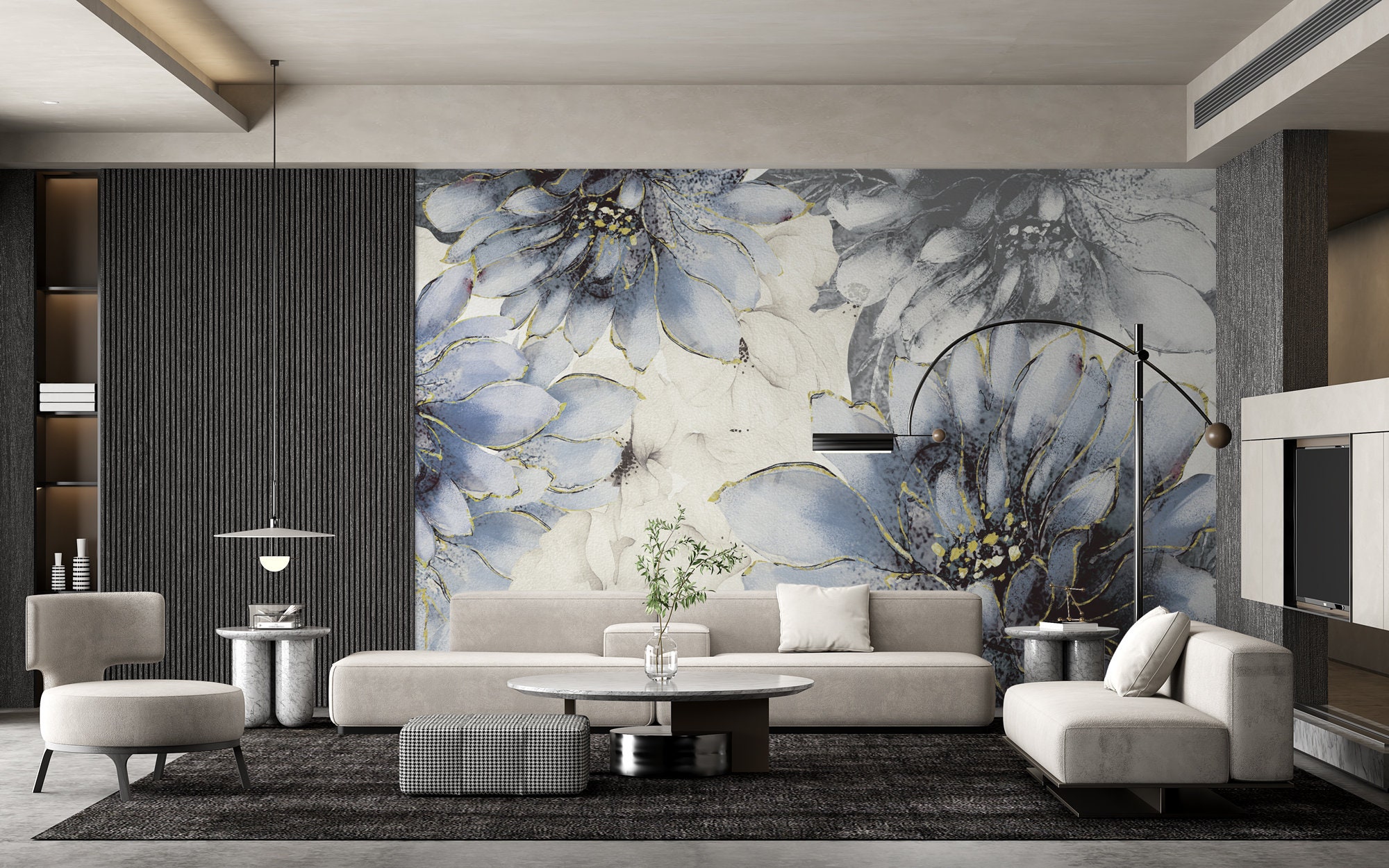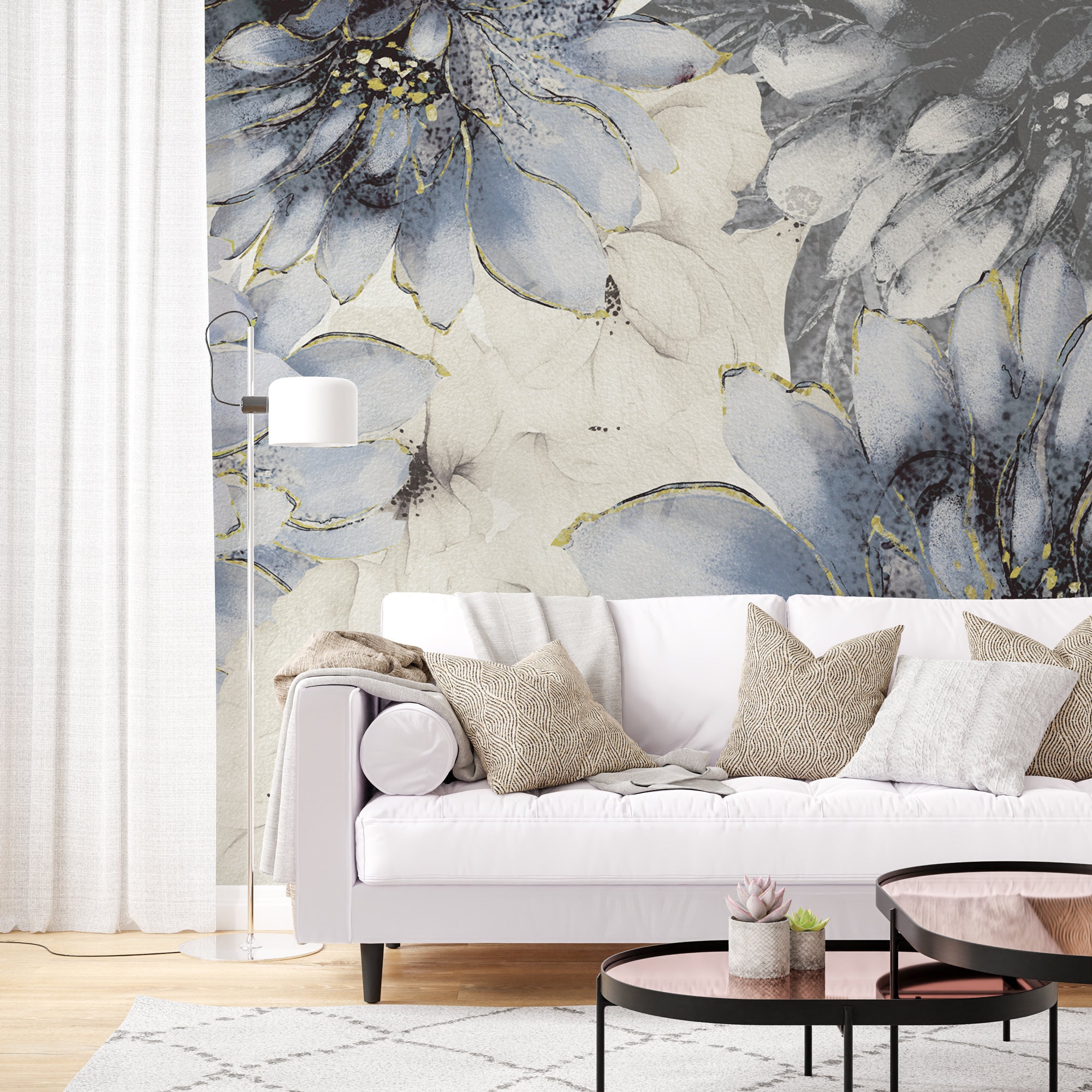 Vintage Big Flowers Wallpaper for Bedroom Decor , Peel and Stick Boho Floral Wall Mural , Removable Trendy Wall Poster