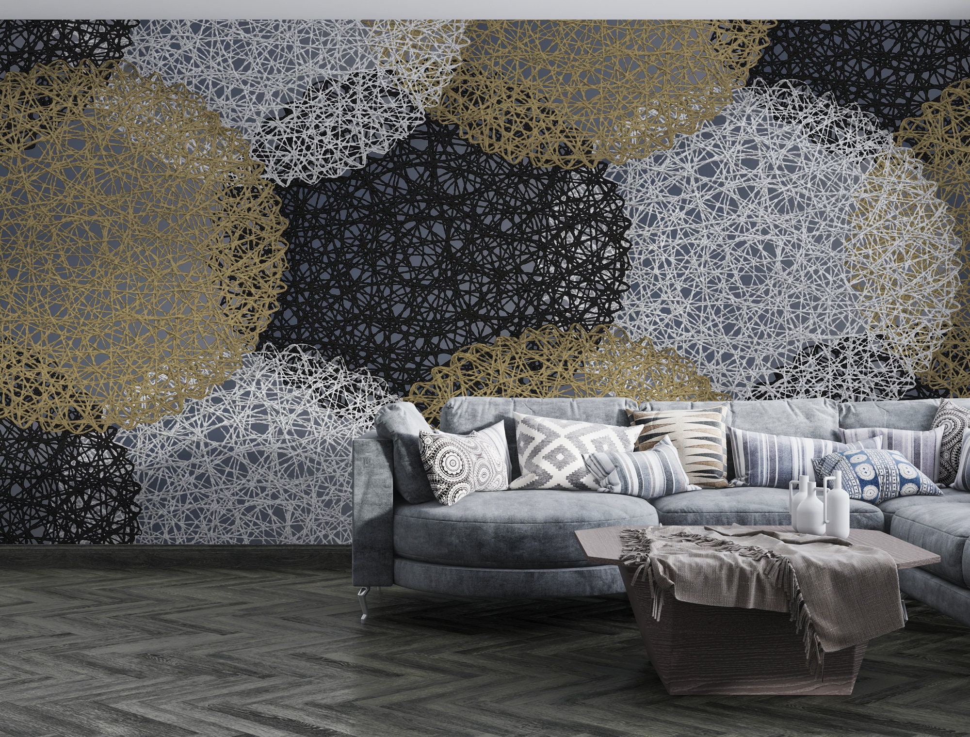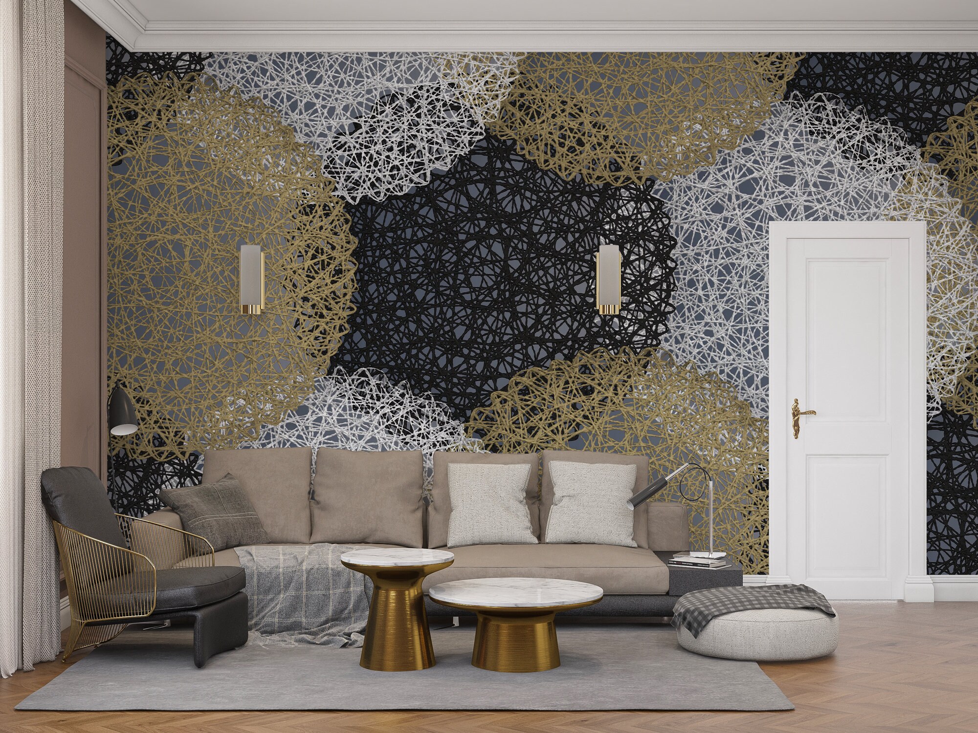 Geometric Spirals Peel and Stick Wallpaper , Abstract Boho Style Modern Wall Mural , Bedroom Decor Art Wallpaper