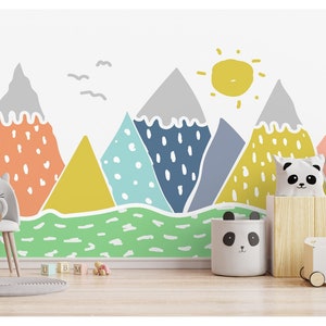 SAFARI Themed Kids Room Wallpaper - Nursery Tropical Wall Mural - Giraffes and Trees Wallpaper for Kids