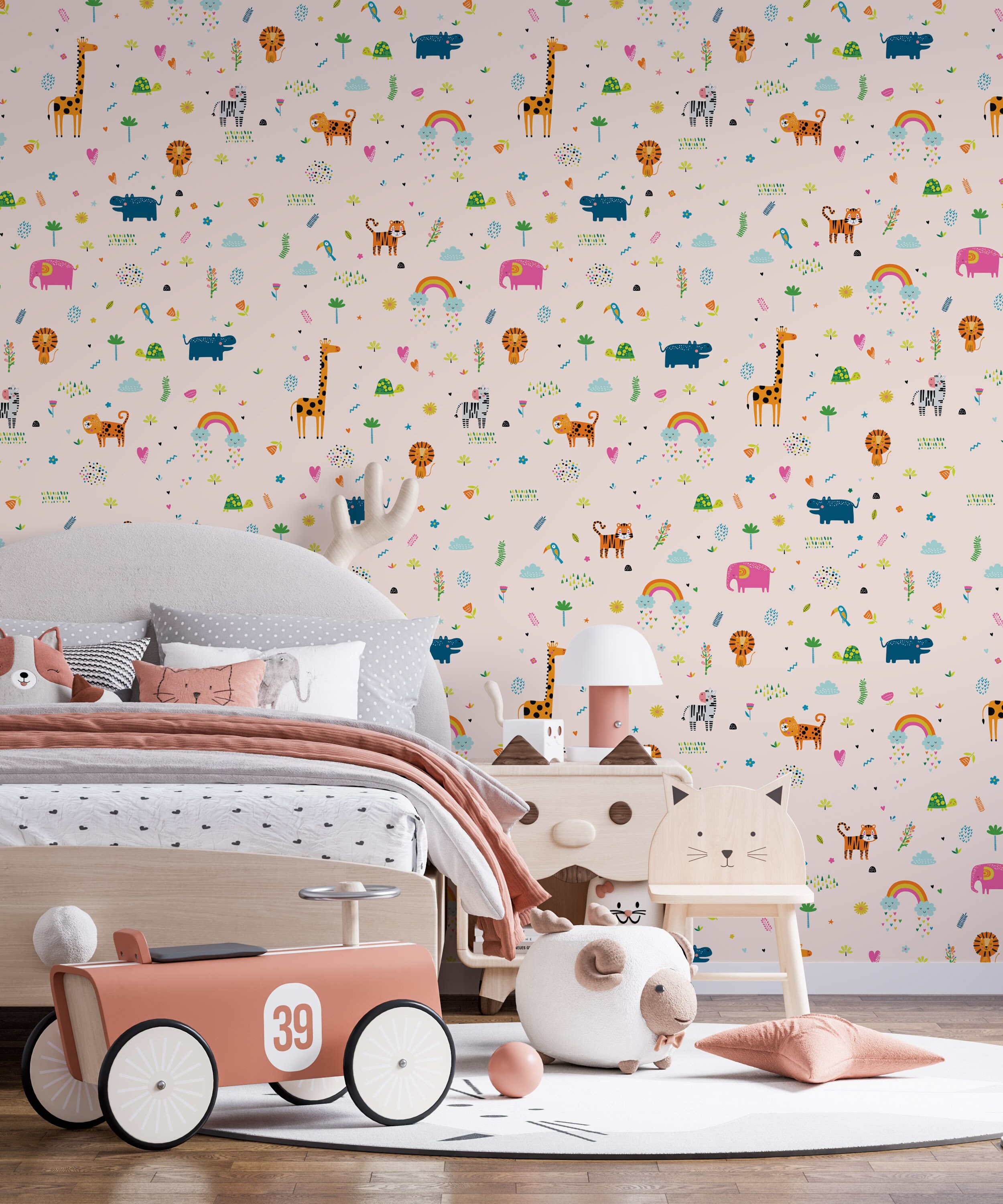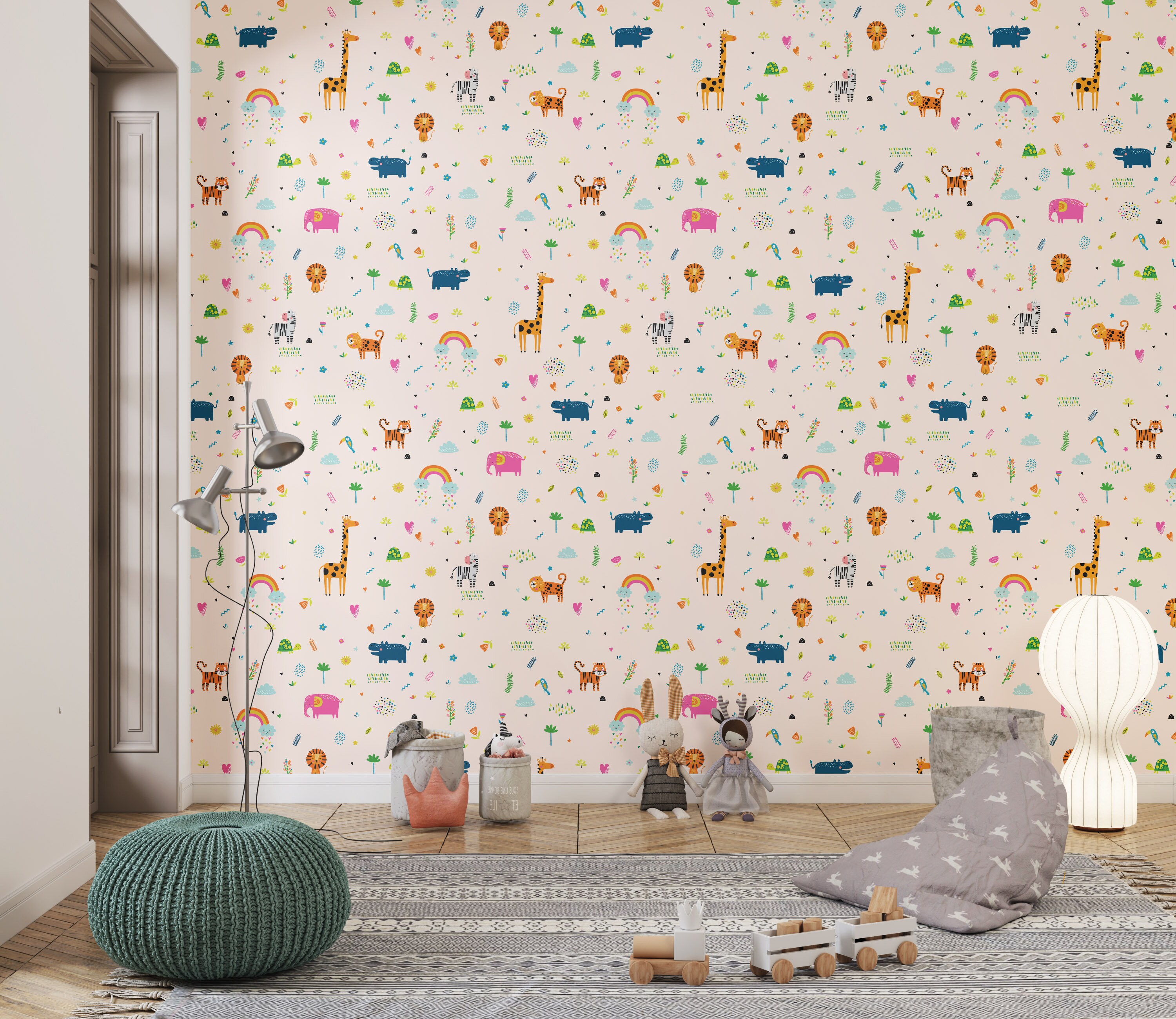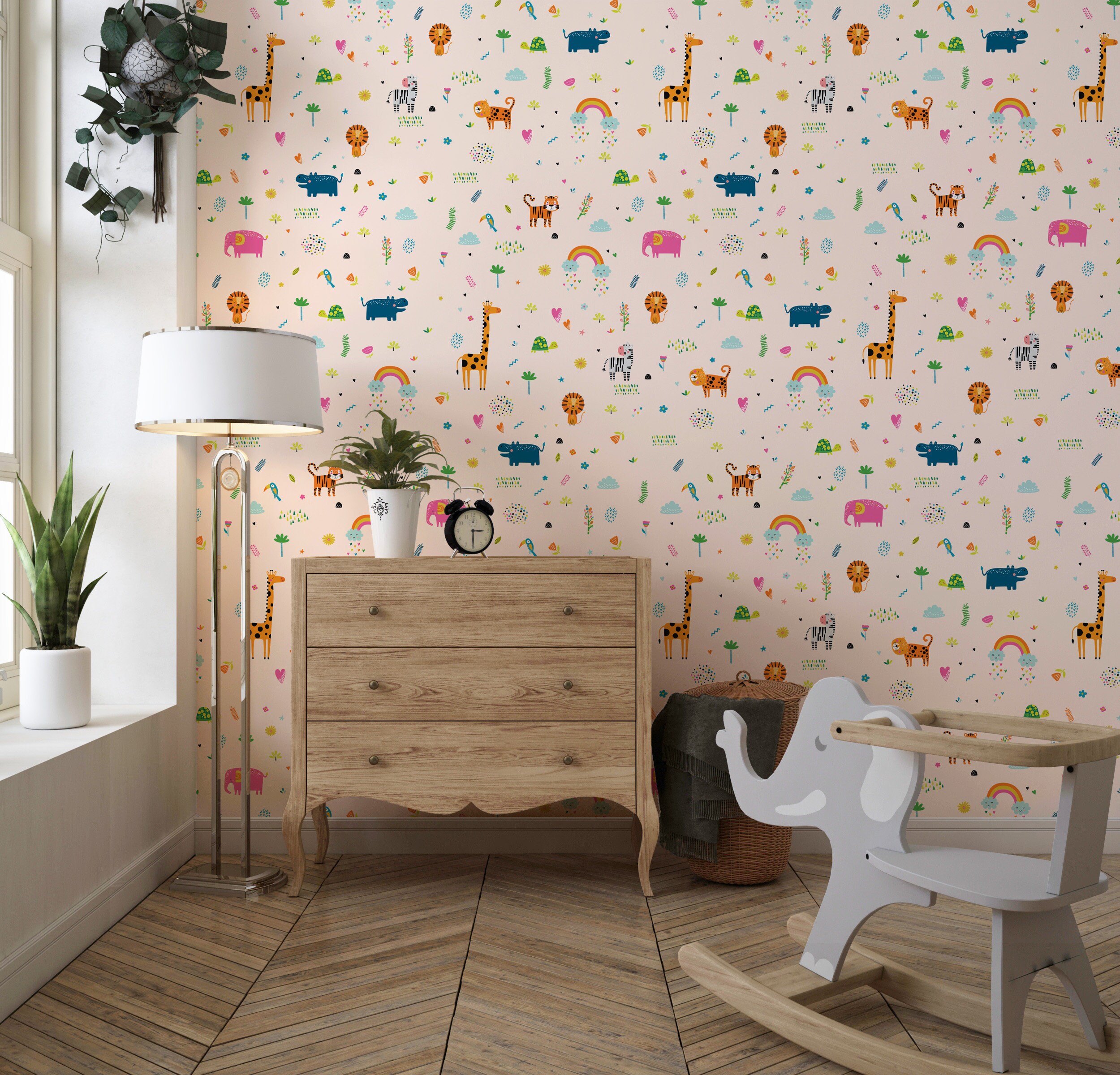 Little Animals Design Wallpaper for Nursery Decor-Tiger and Giraffe Design Mural-Kids Room Decor