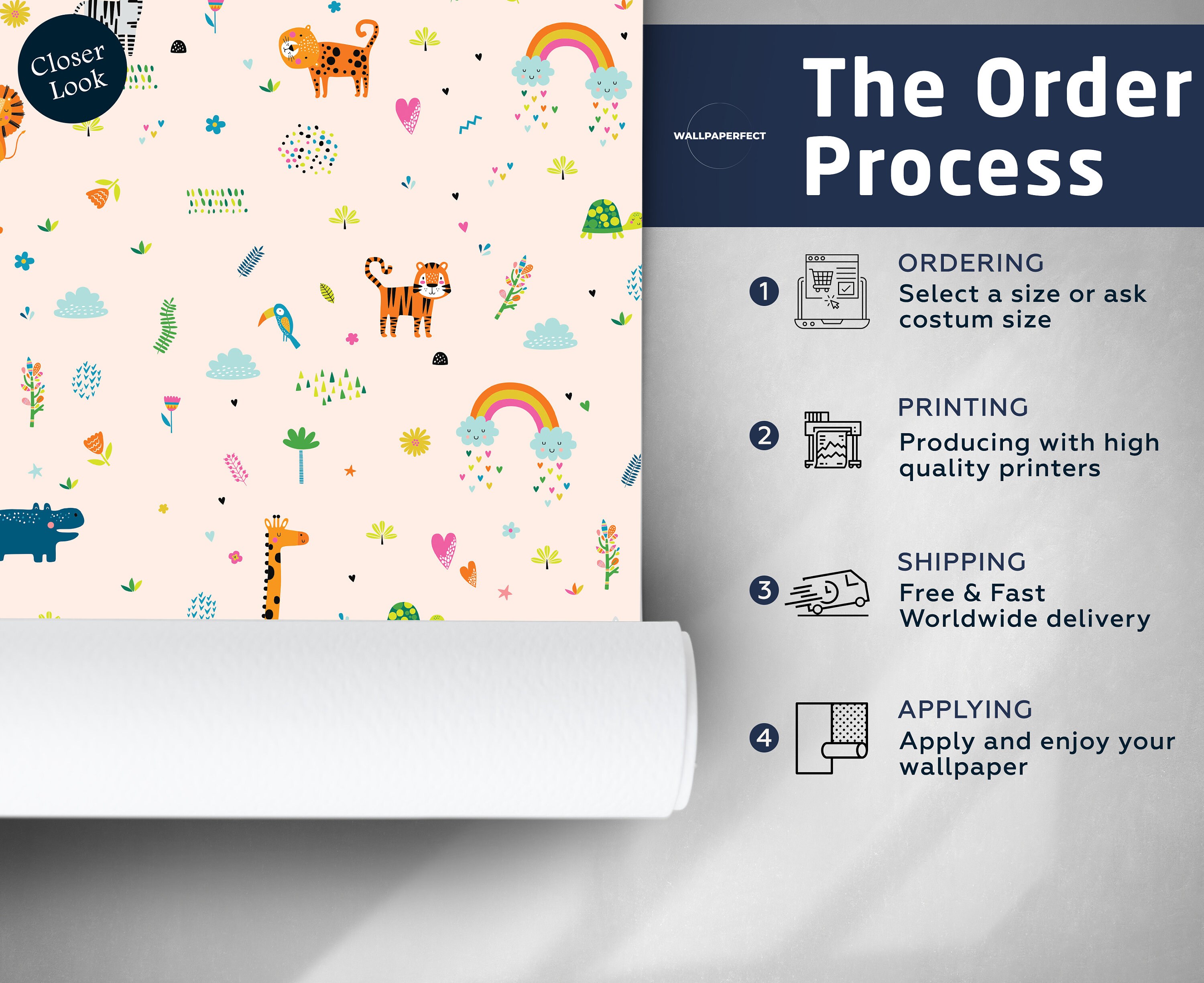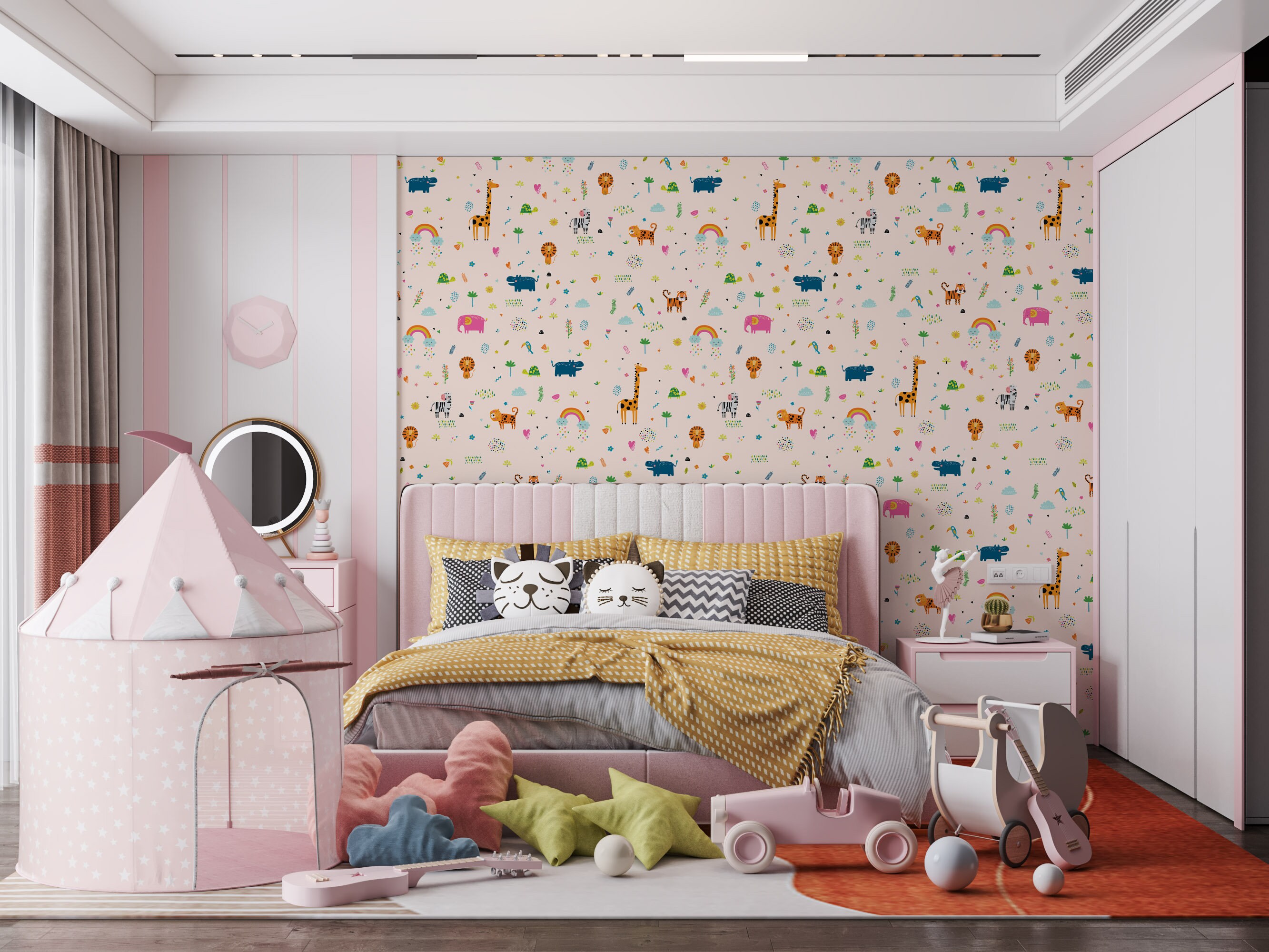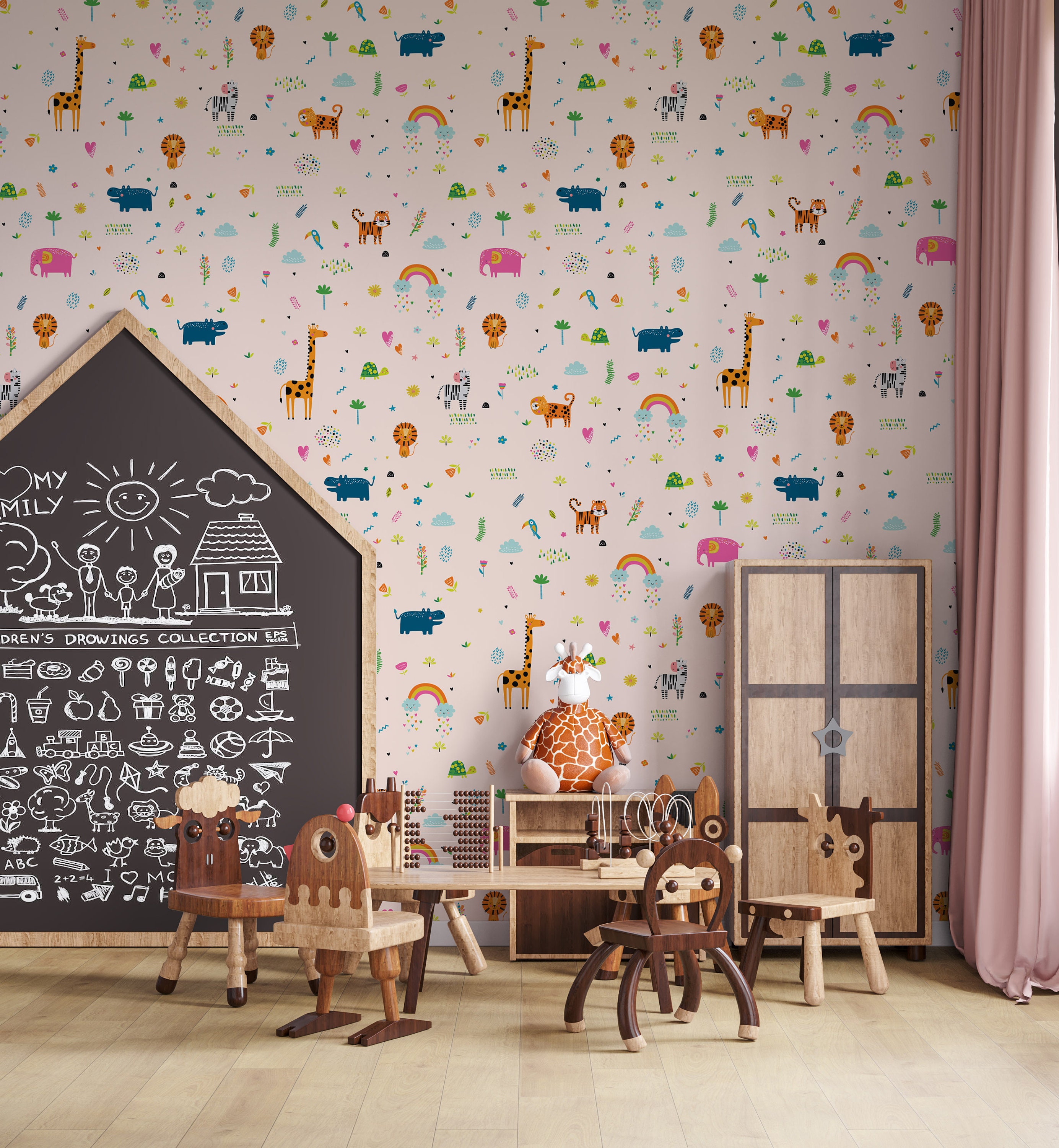 Little Animals Design Wallpaper for Nursery Decor-Tiger and Giraffe Design Mural-Kids Room Decor