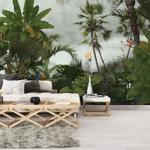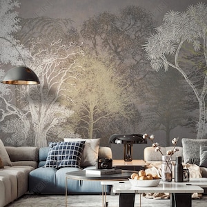 Vintage Style Trees and Leaves Wallpaper - Botanical Garden Peel and Stick Mural - Village Life Wallpaper -RETRO Wallpaper