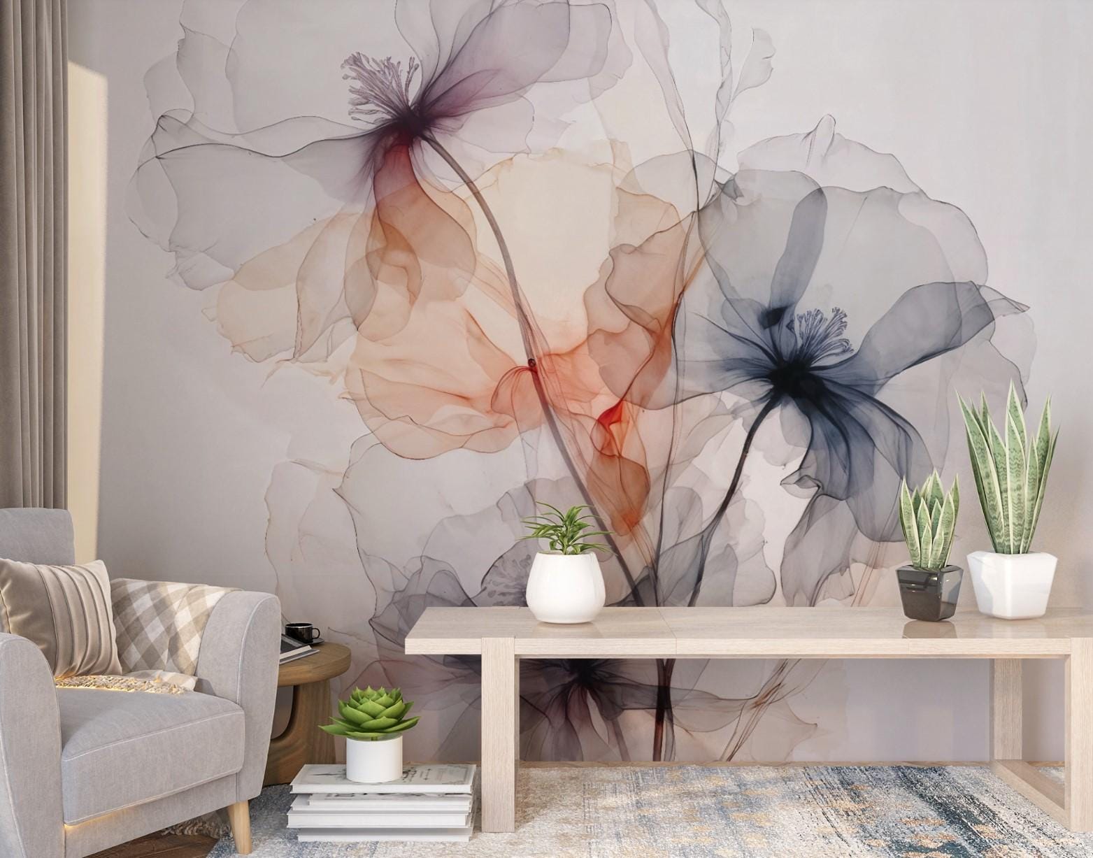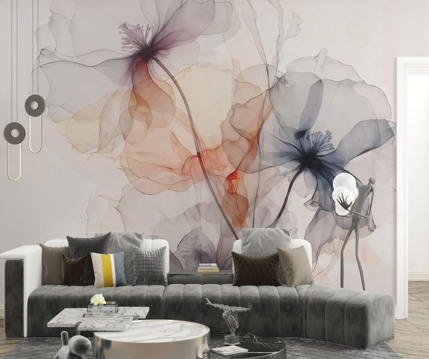 Watercolor Floral Wall Mural for Living Room Elegant Transparent Flower Wallpaper Modern Abstract Botanical Art Large Bloom Wall Decor