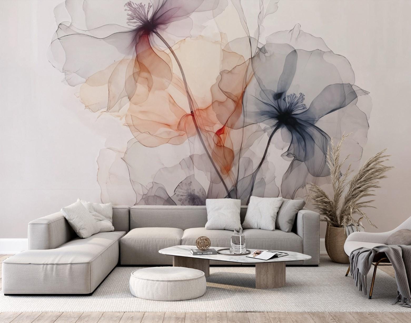 Elevate your interior with this stunning watercolor floral wall mural, where art meets nature in the most graceful way 🌸🎨 Featuring translucent botanical blooms in soft neutral tones with smoky accents, this mural creates a serene and sophisticated atmosphere ideal for living rooms, bedrooms, offices, or creative spaces. A true statement piece for modern, minimalist, or artistic interiors.
