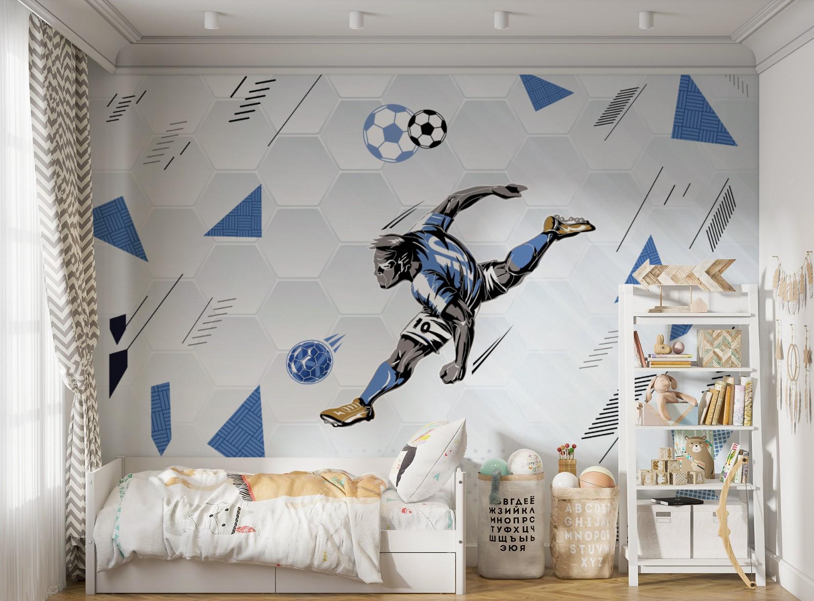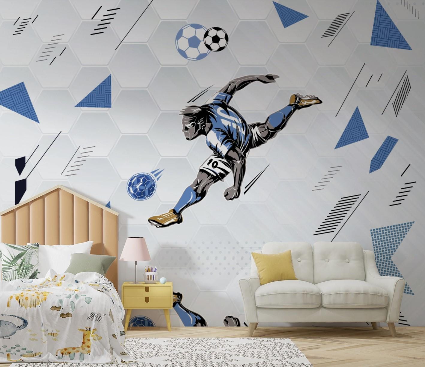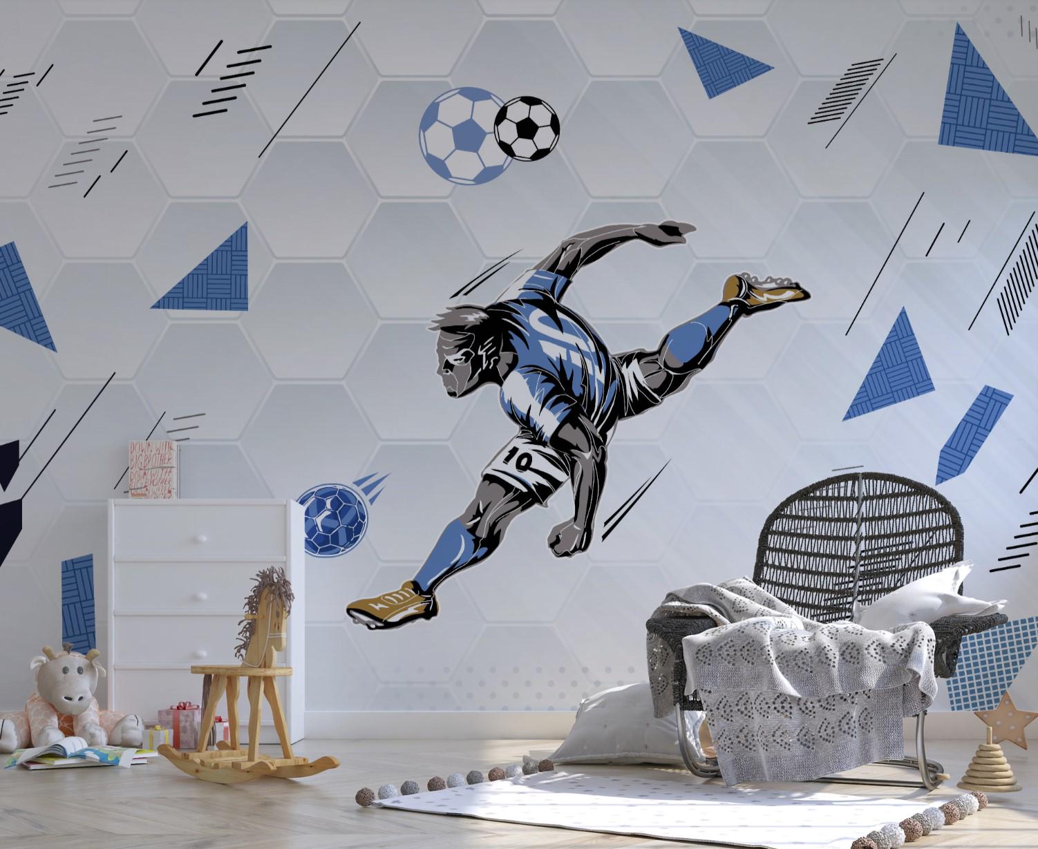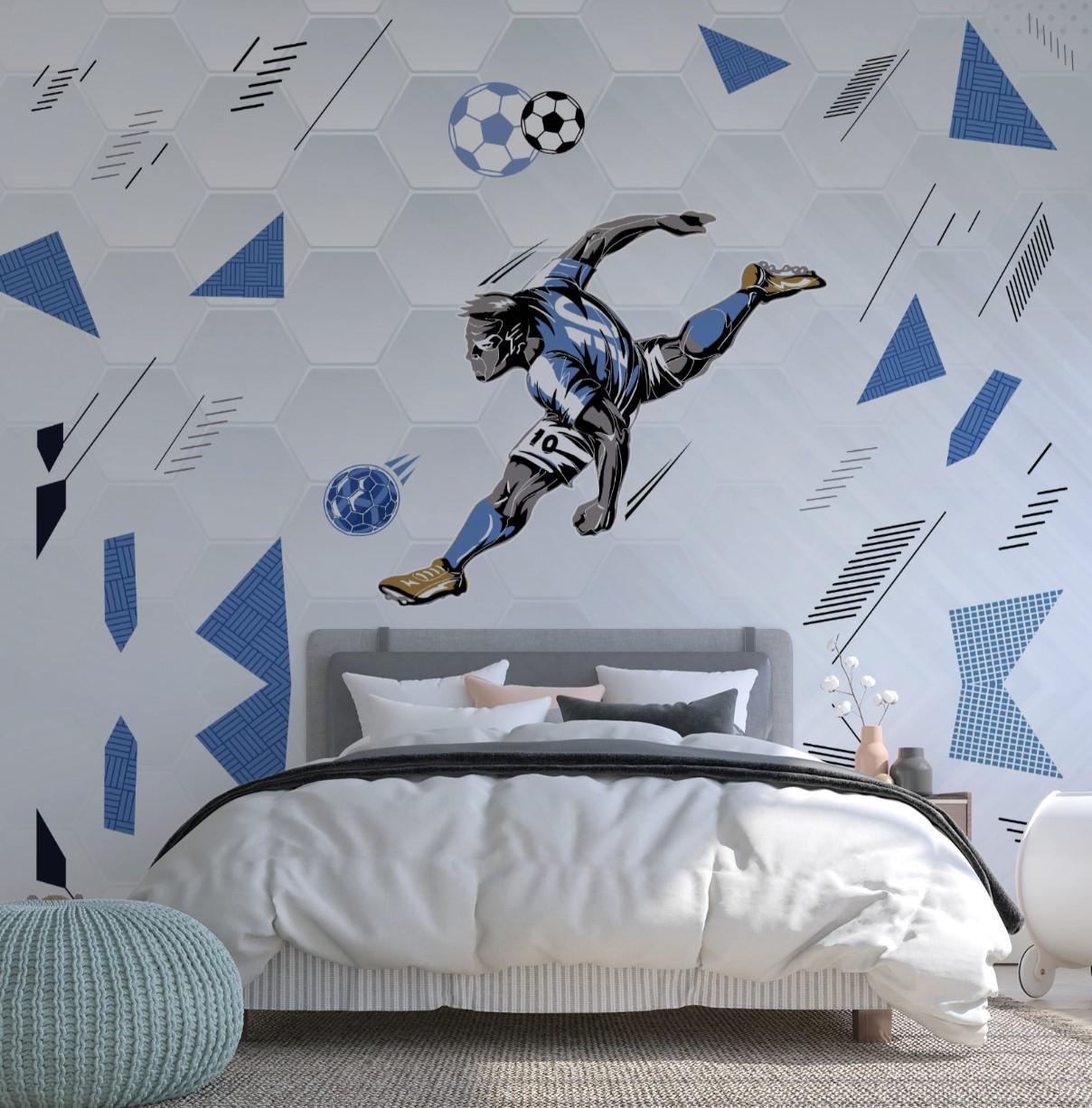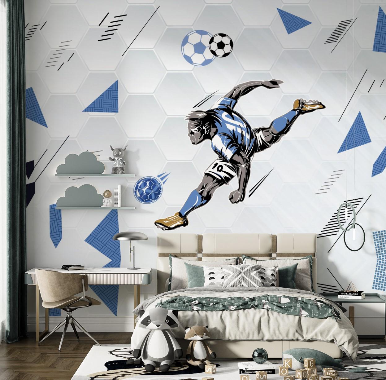 Football Sports Action Wall Mural – Boys Room Wallpaper, Soccer Kick Design