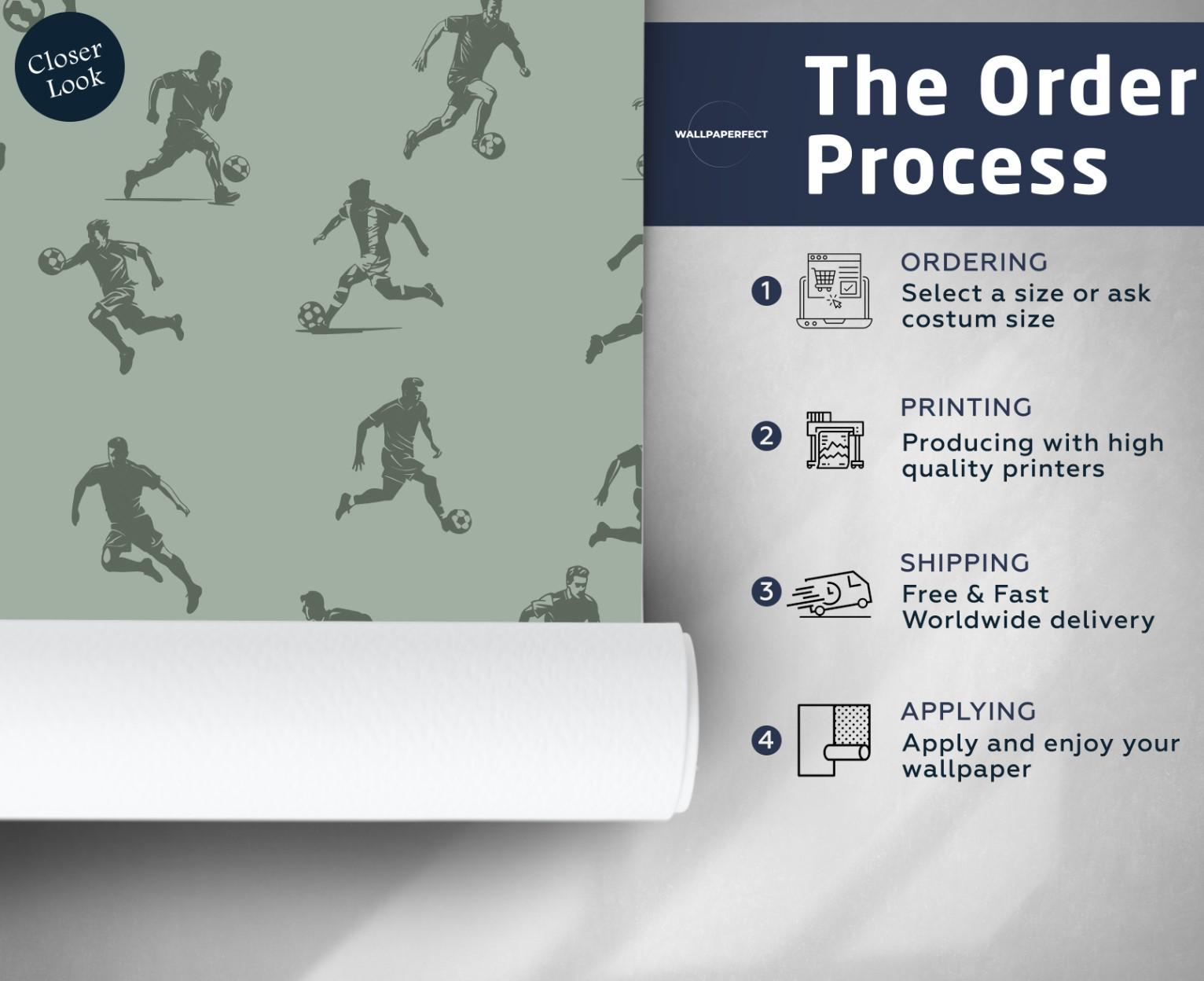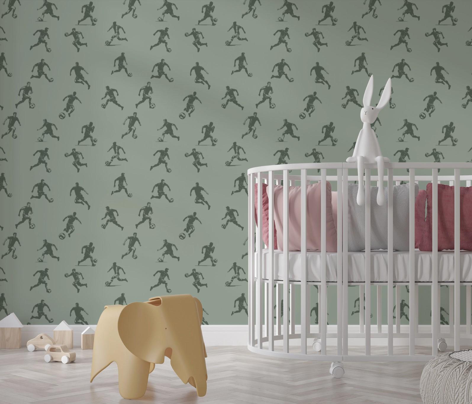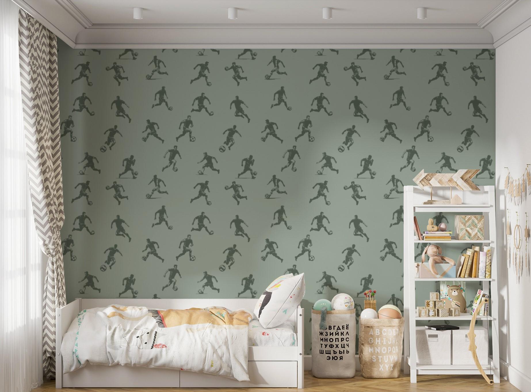 Soccer Player Silhouette Wallpaper – Sports Theme Wall Mural for Boys Room or Nursery, Minimalist Green Football Wallpaper