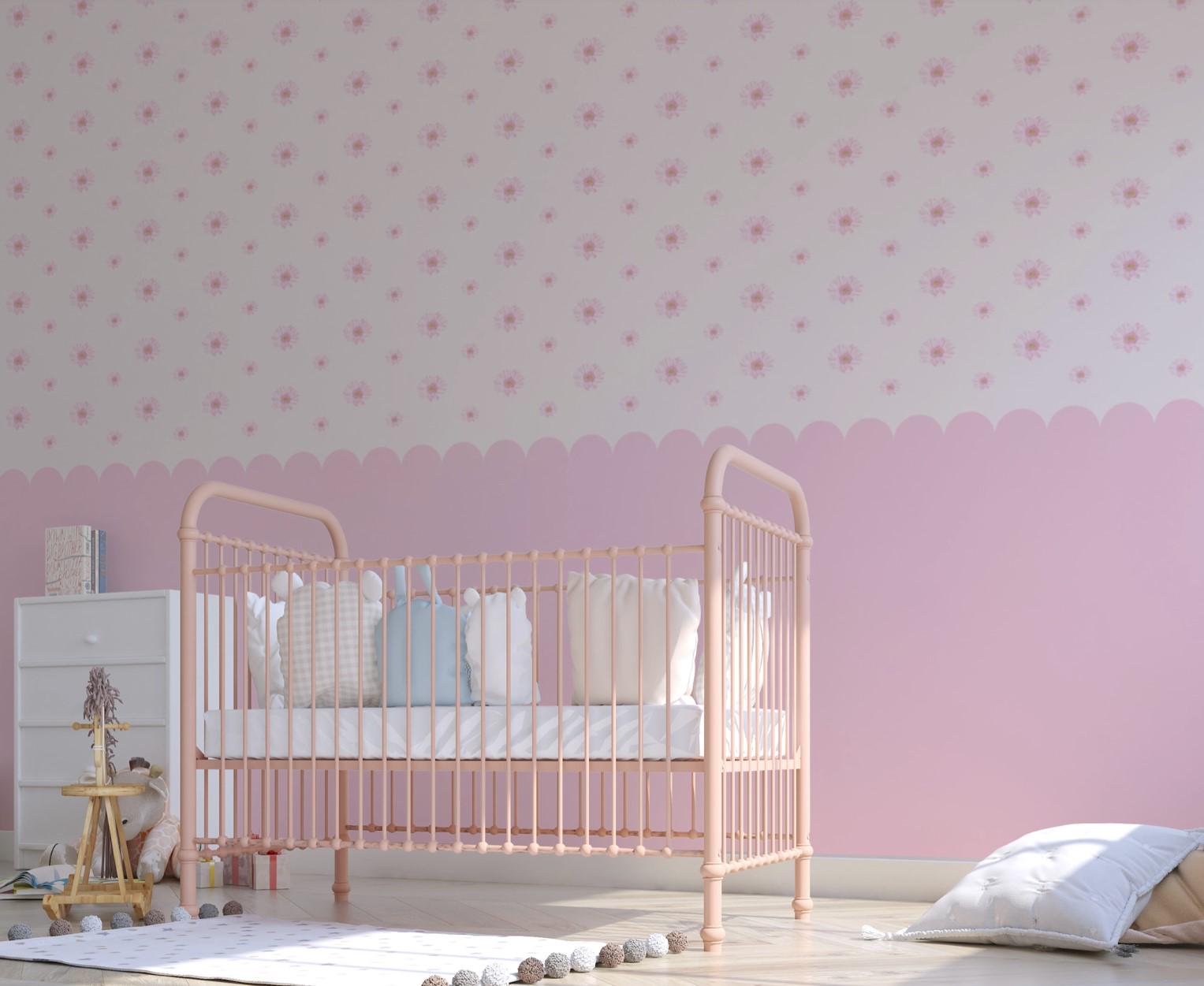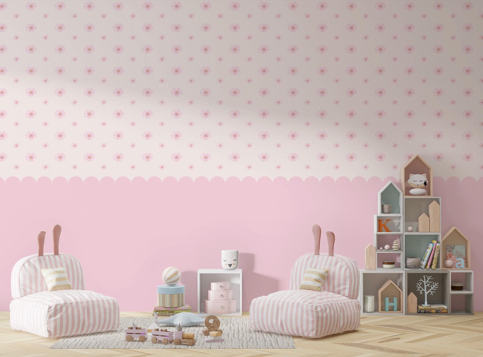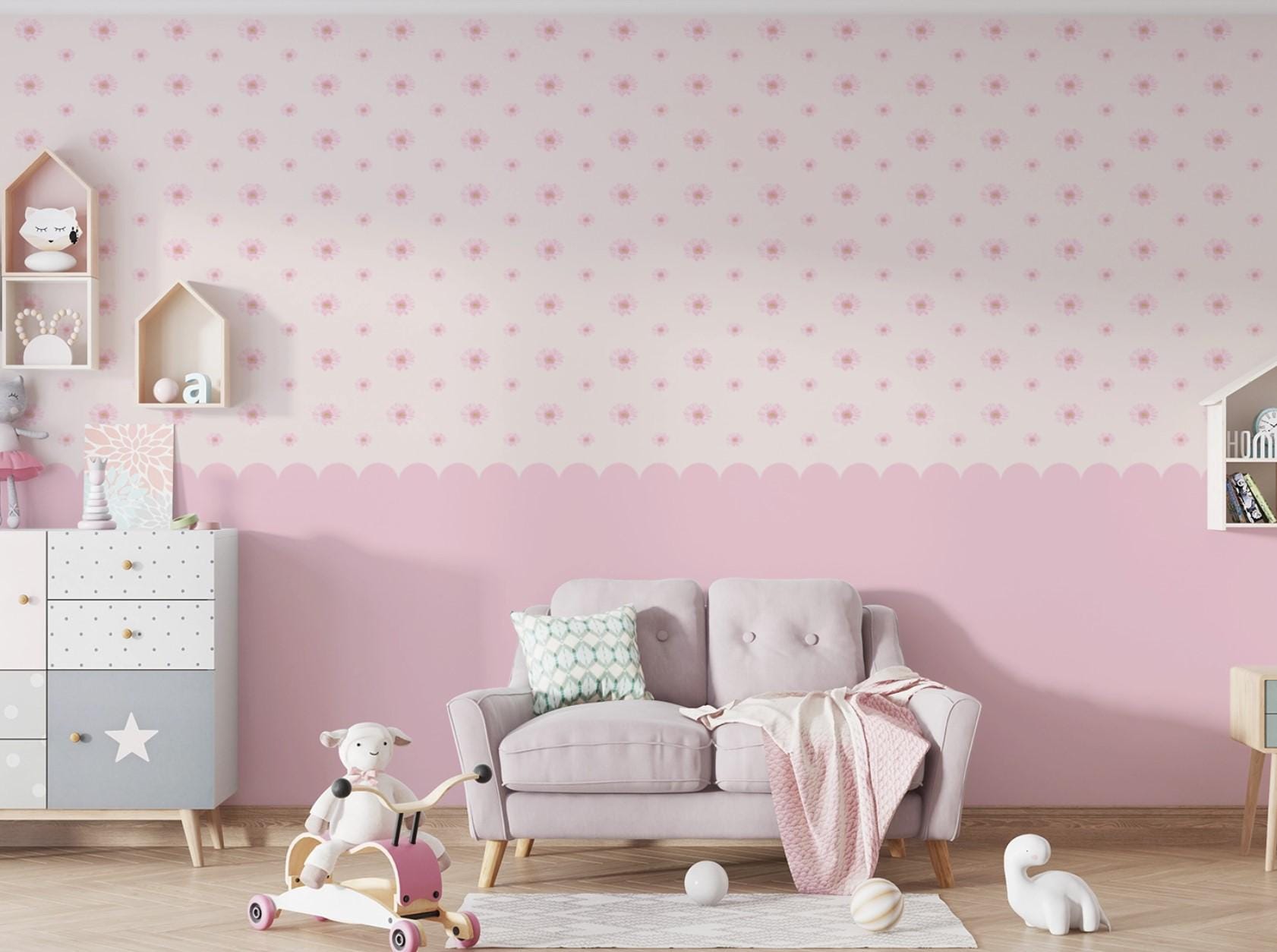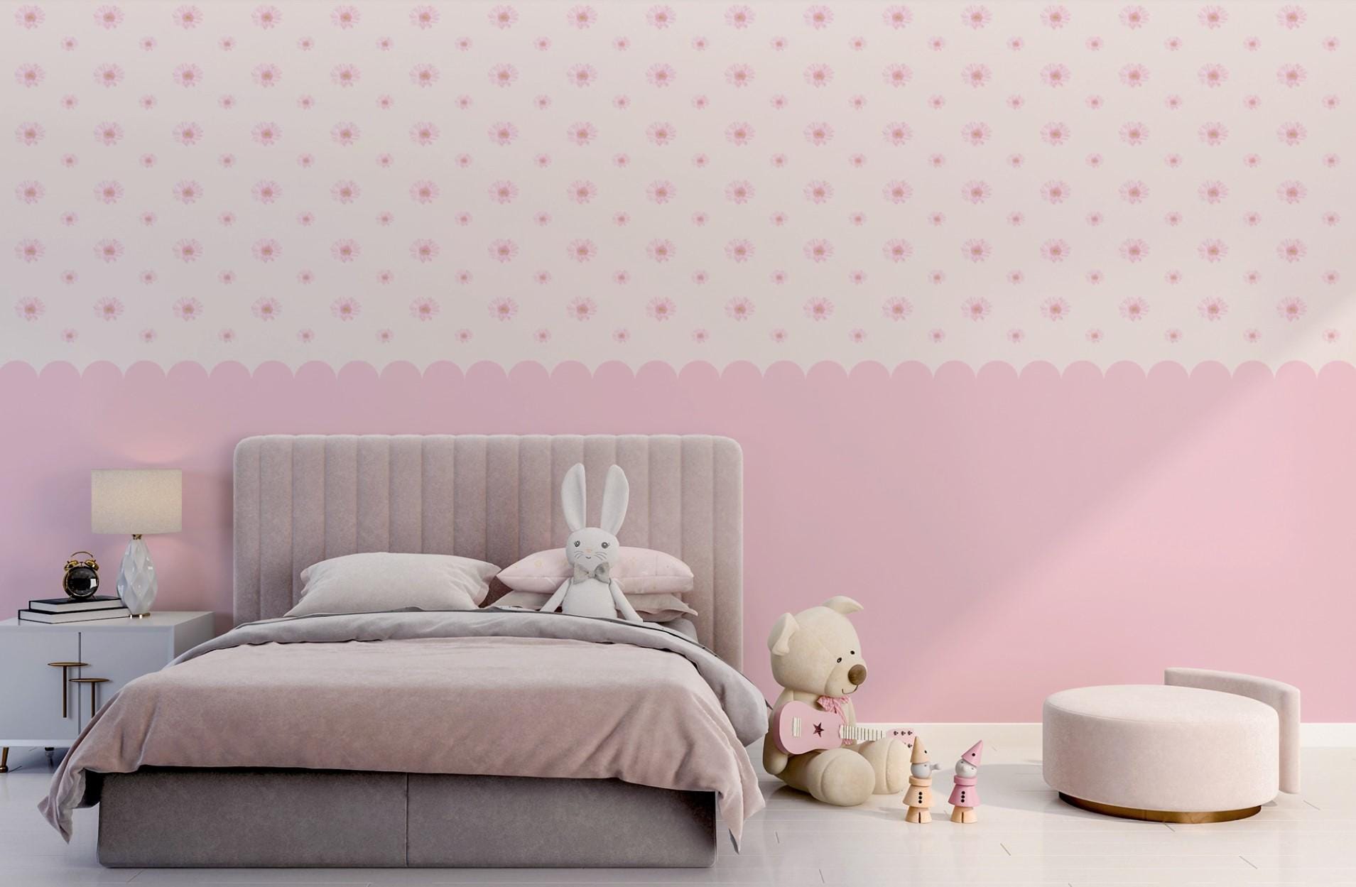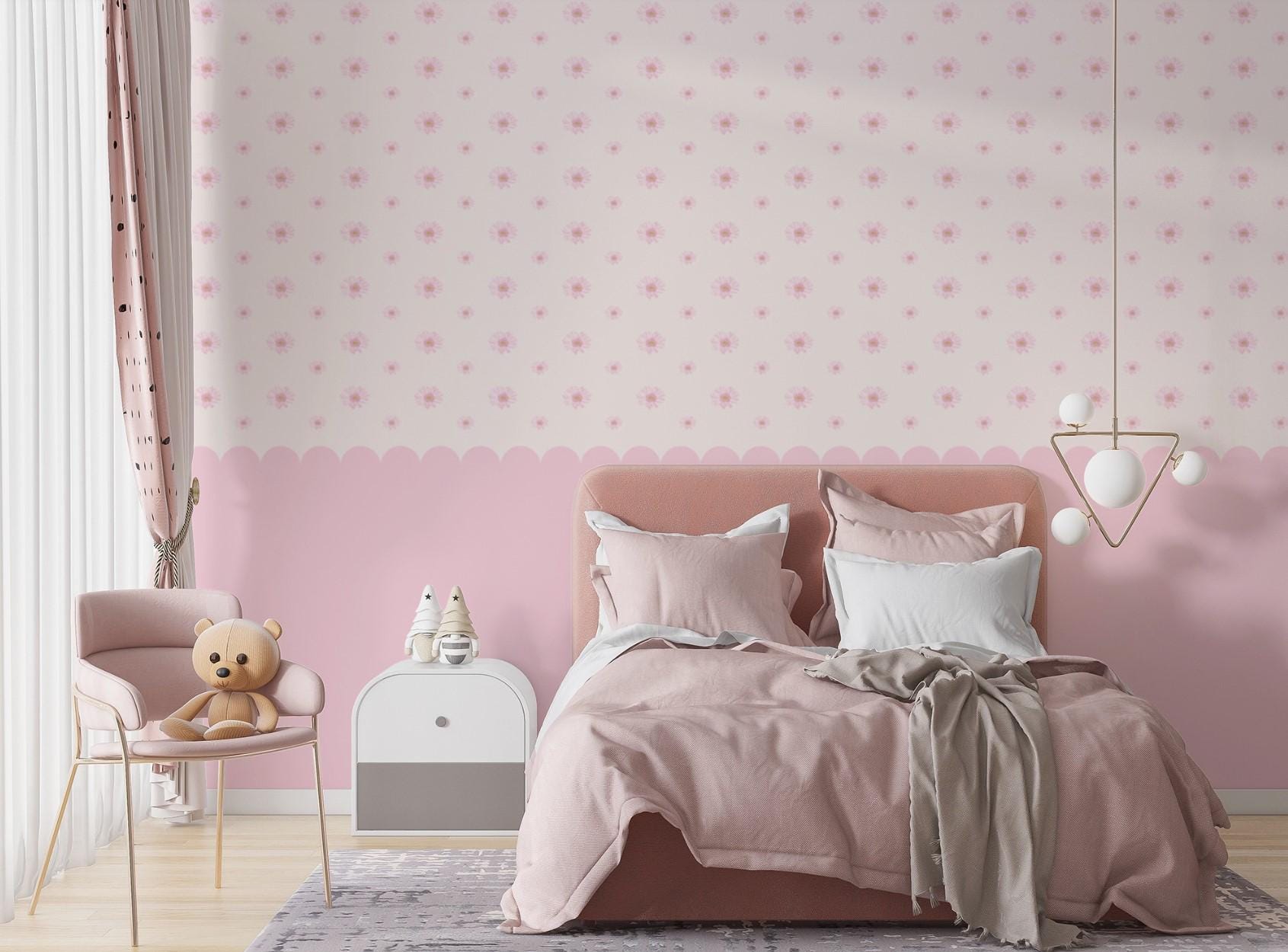 Pink Floral Polka Wallpaper for Girls Room – Cute Flower Wall Mural, Nursery Wall Decor, Baby Room Wallpaper, Self Adhesive or Non-Woven