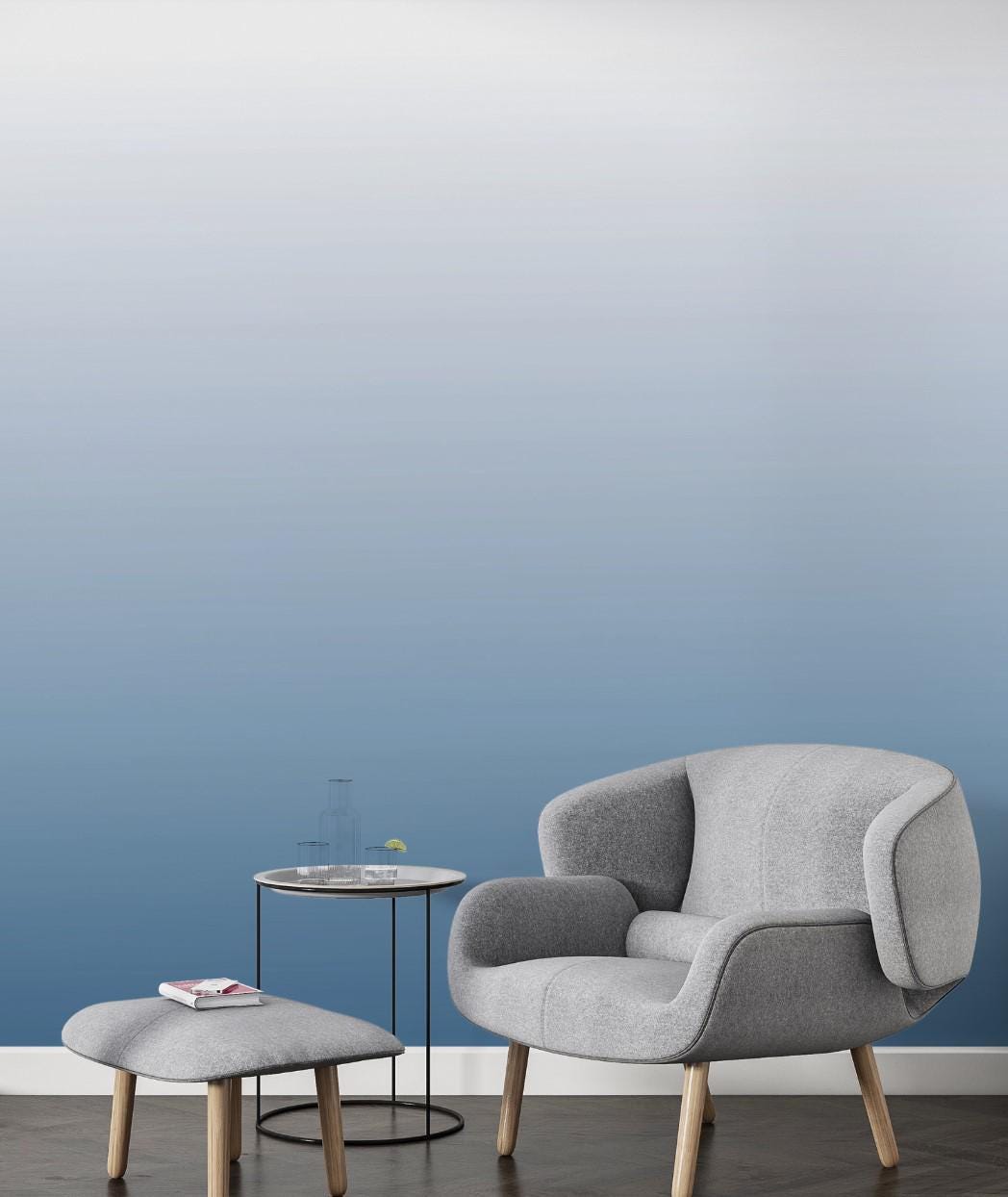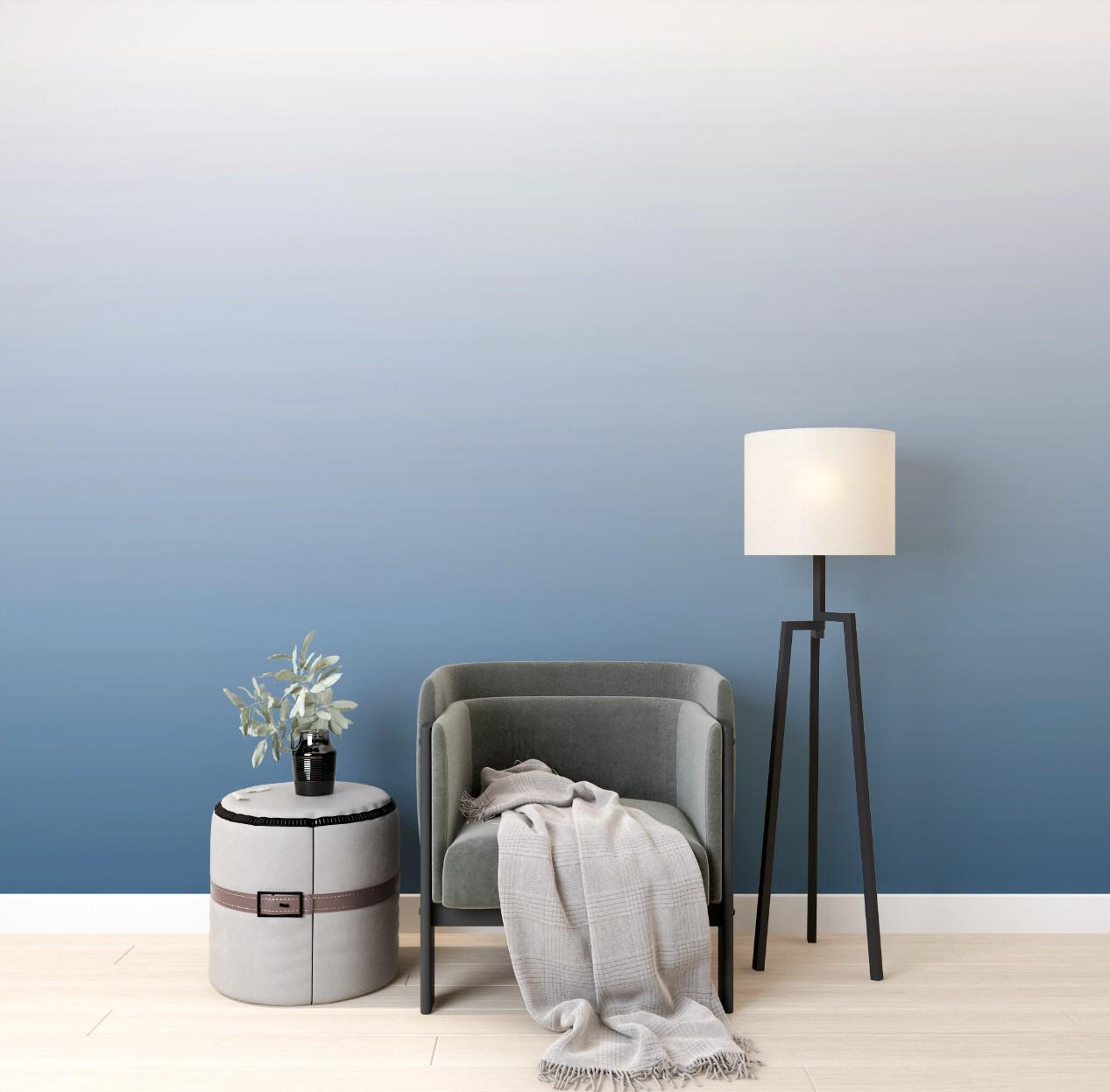 Blue Ombre Wall Mural – Modern Gradient Wallpaper for Bedroom – Minimalist Calm Wall Art – Custom Size Peel & Stick / Non-Woven