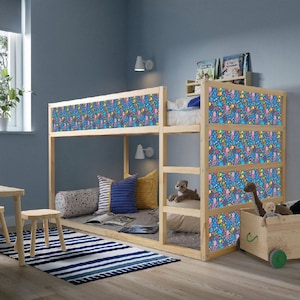 Cute Floral and Unicorn Pattern IKEA Kura Bed Sticker Set, Soft Flowers Illustrations Kids Room Kura Bed Decals, Boho Rainbow Kids Decal Set