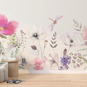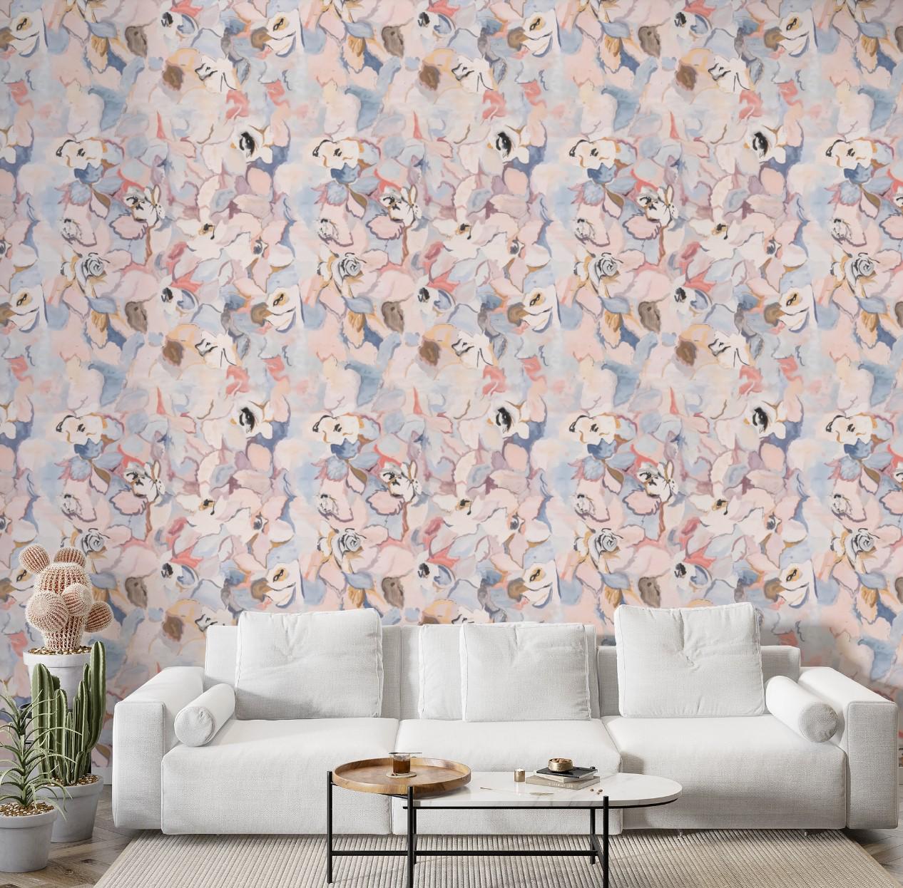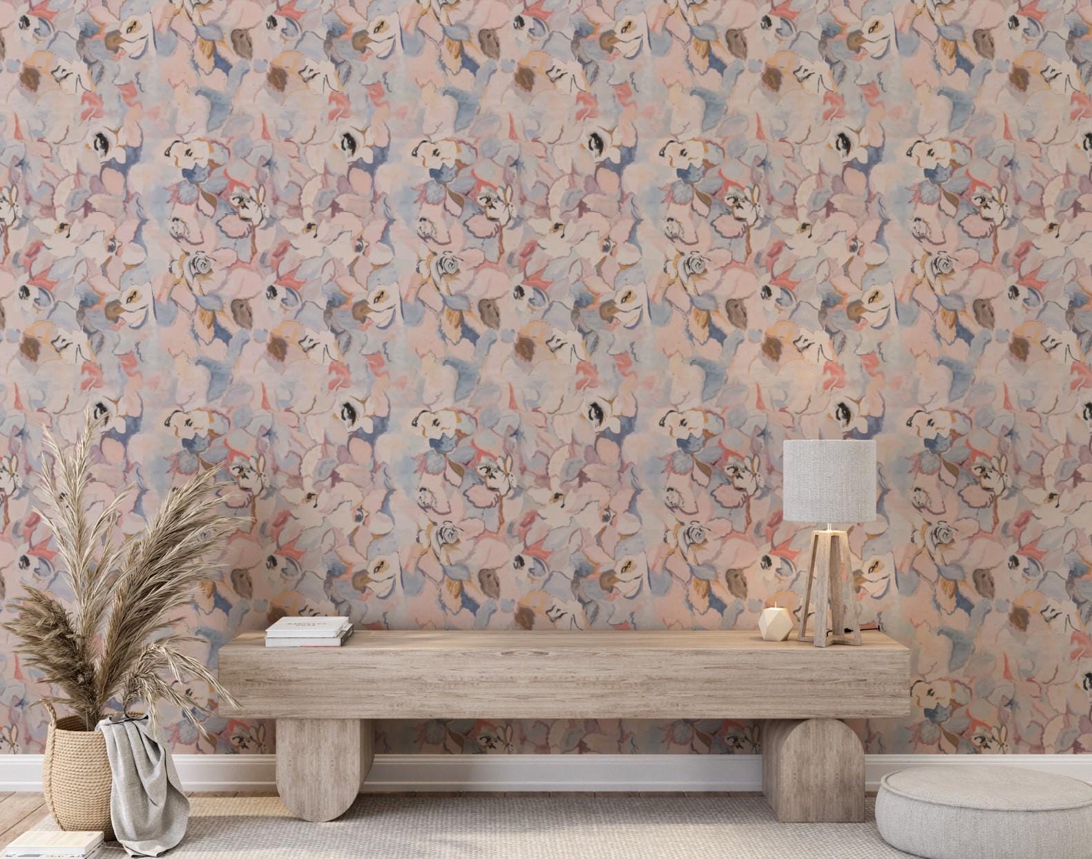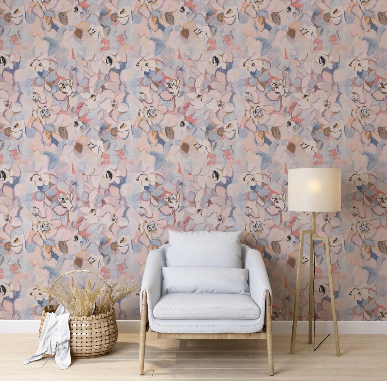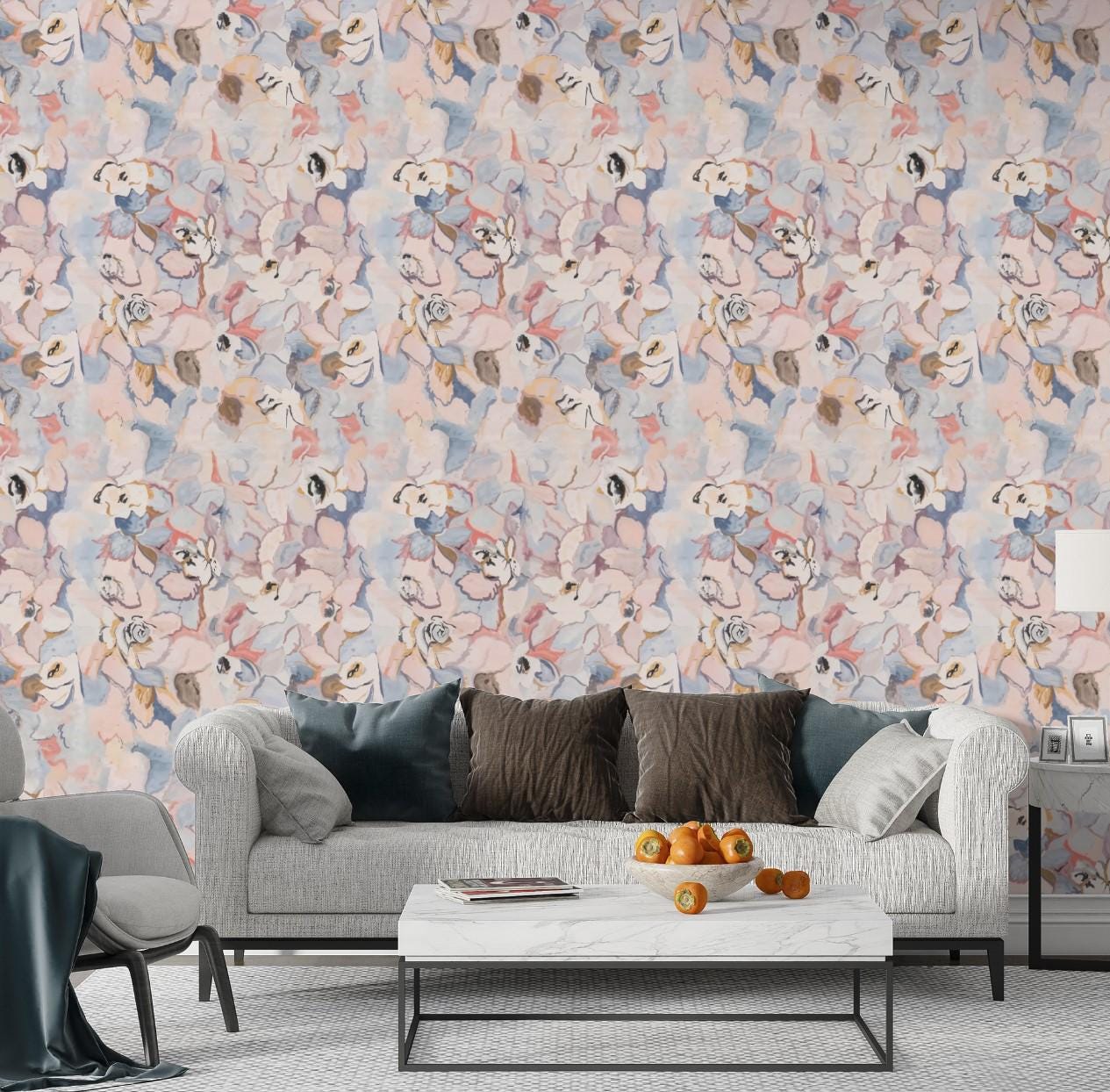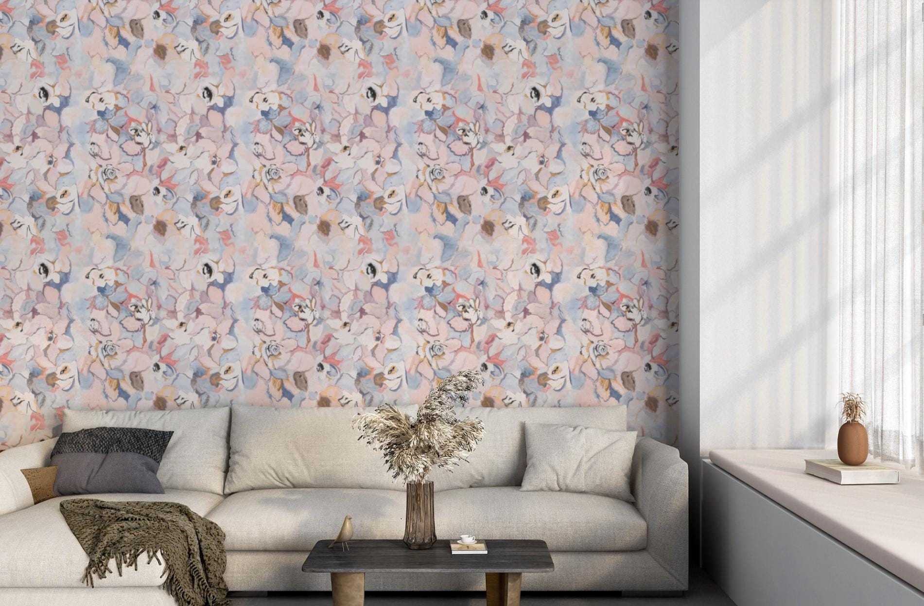 Abstract Watercolor Floral Wallpaper, Soft Pink Little Flower Pattern Mural for Living Room or Bedroom, Peel & Stick or Traditional Install