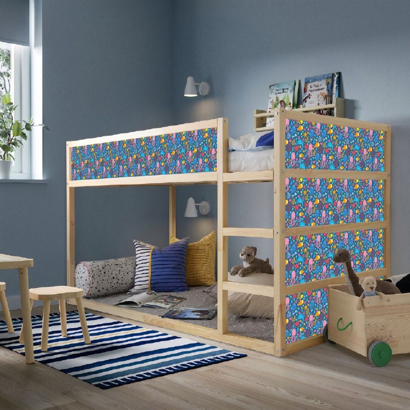 Colorful Animals Design IKEA Kura Bed Sticker Set, Playful Cartoon Pattern Removable Bunk Bed Decal for Nursery Room, Cute Design Kura Bed