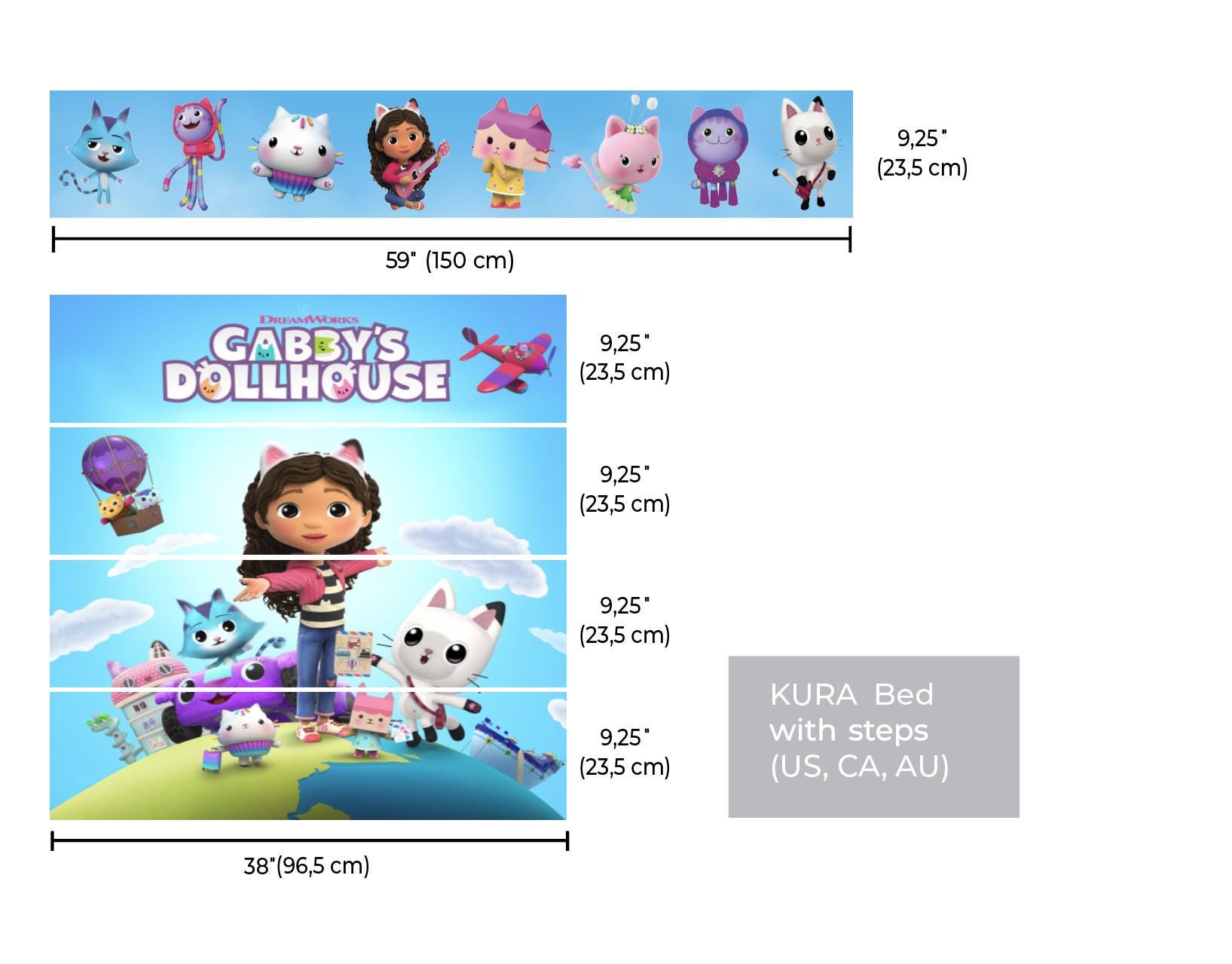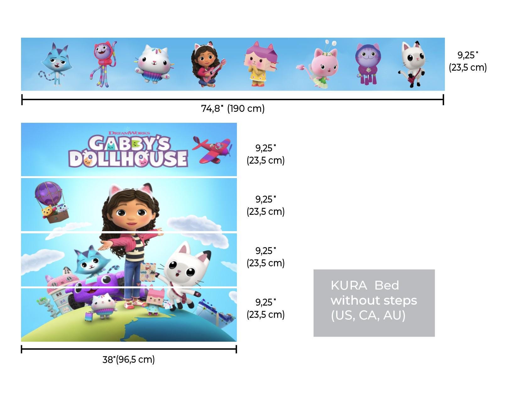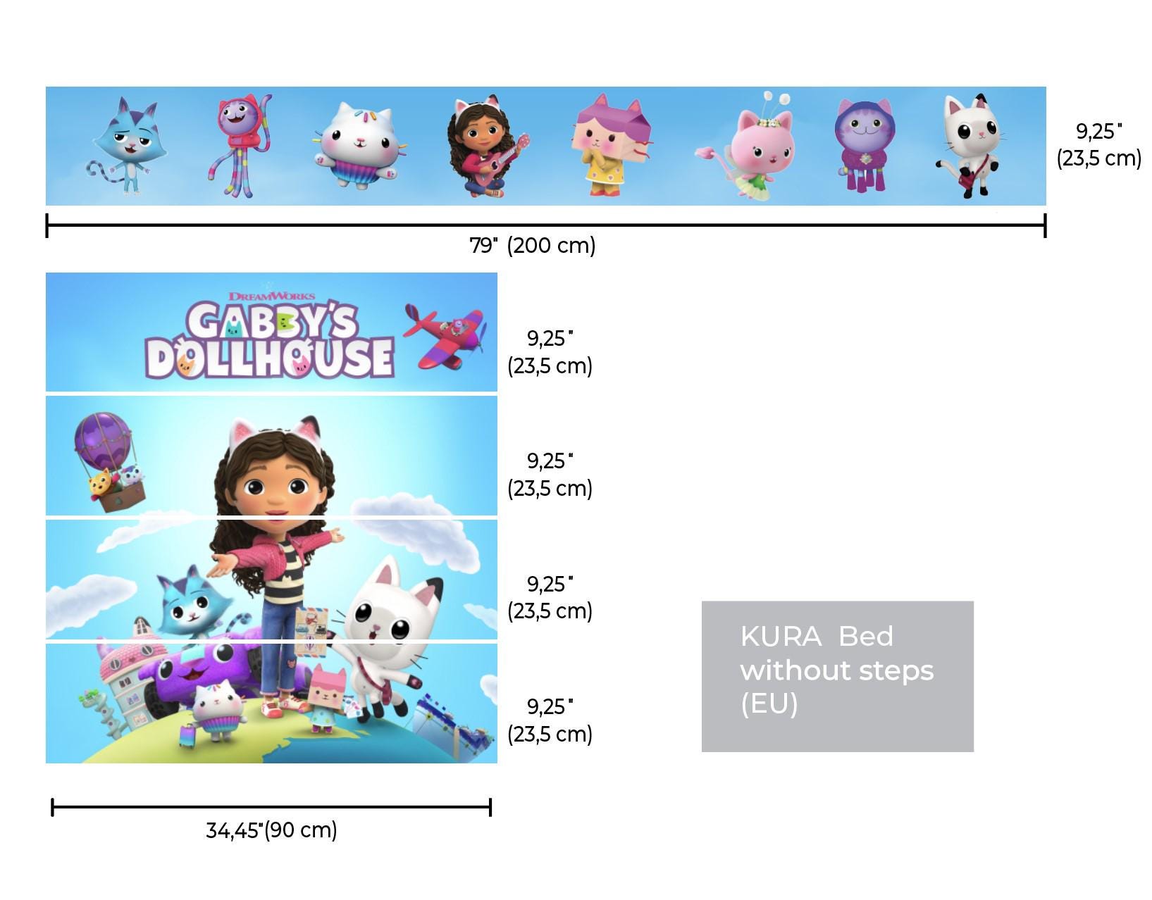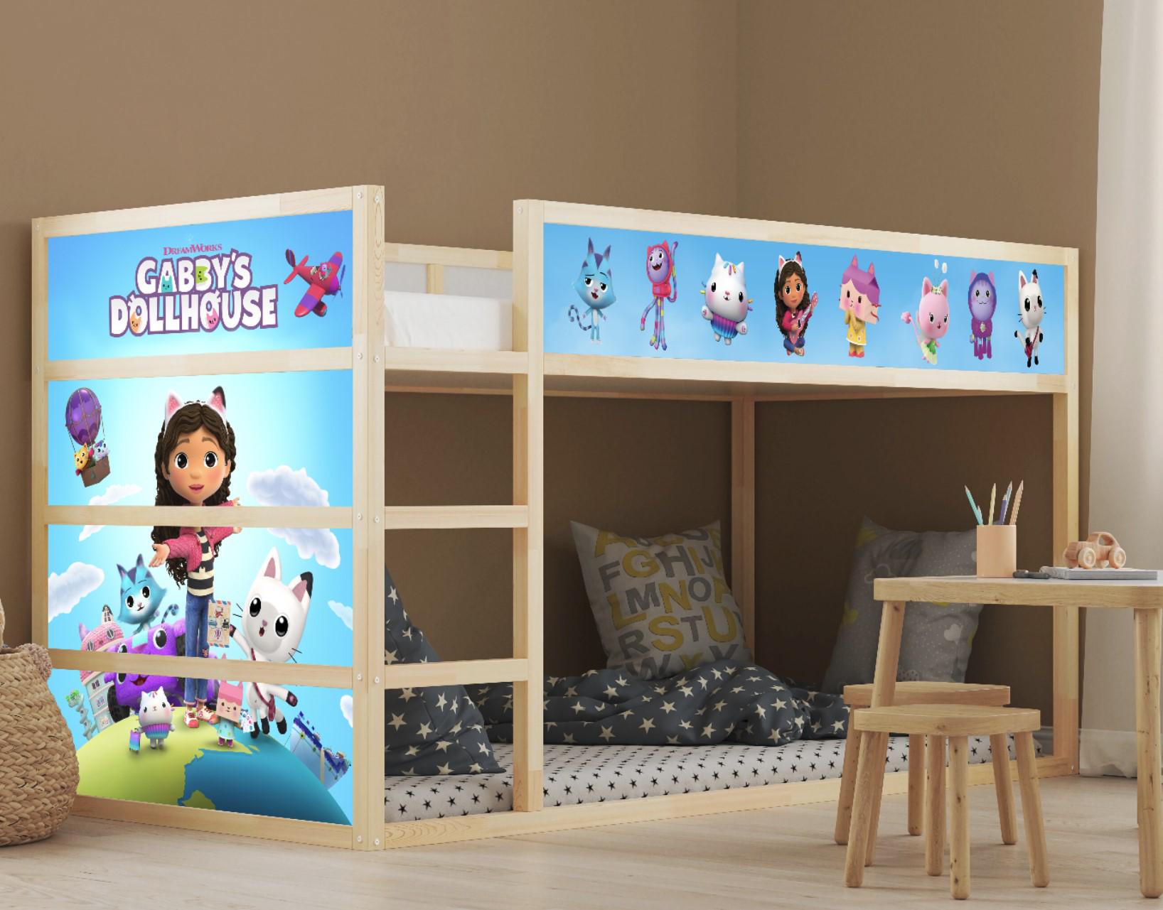 Gabby’s Dollhouse IKEA Kura Bed Sticker Set - Kids Room Kura Bed Decals - Cute Cat Adventure TV Show Theme Design Peel and Stick Wall Panels