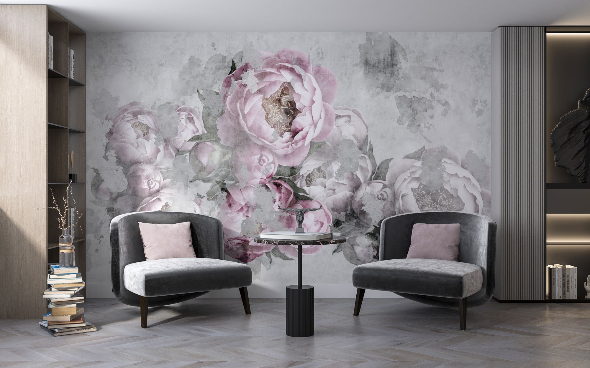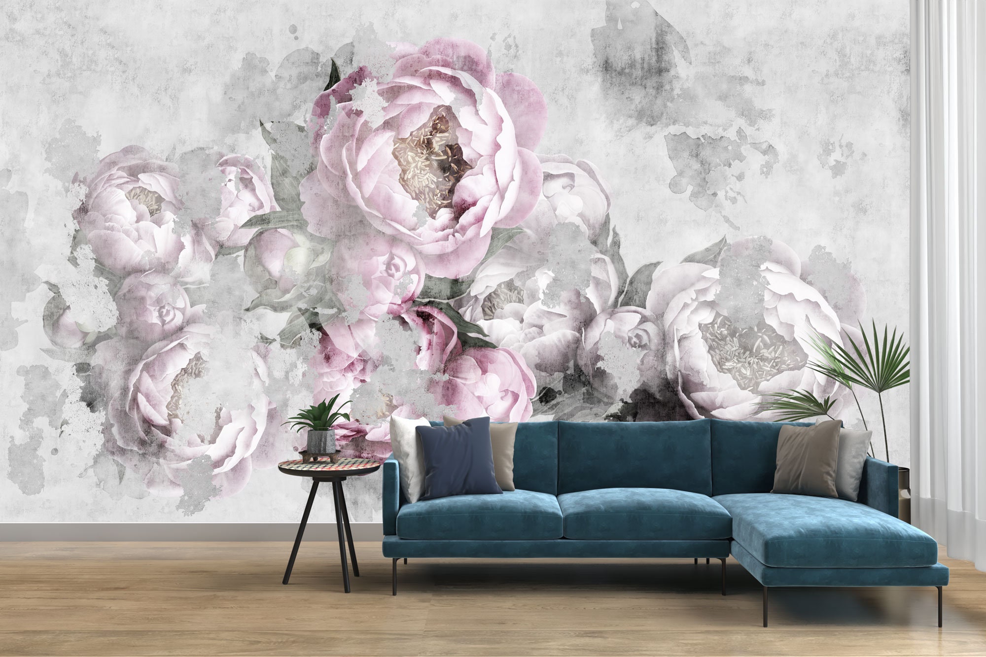 Soft Pink Peony Floral Wallpaper Mural, Vintage Watercolor Flower Wall Art, Romantic 3D Look Living Room Bedroom Decor, Interior Design Art